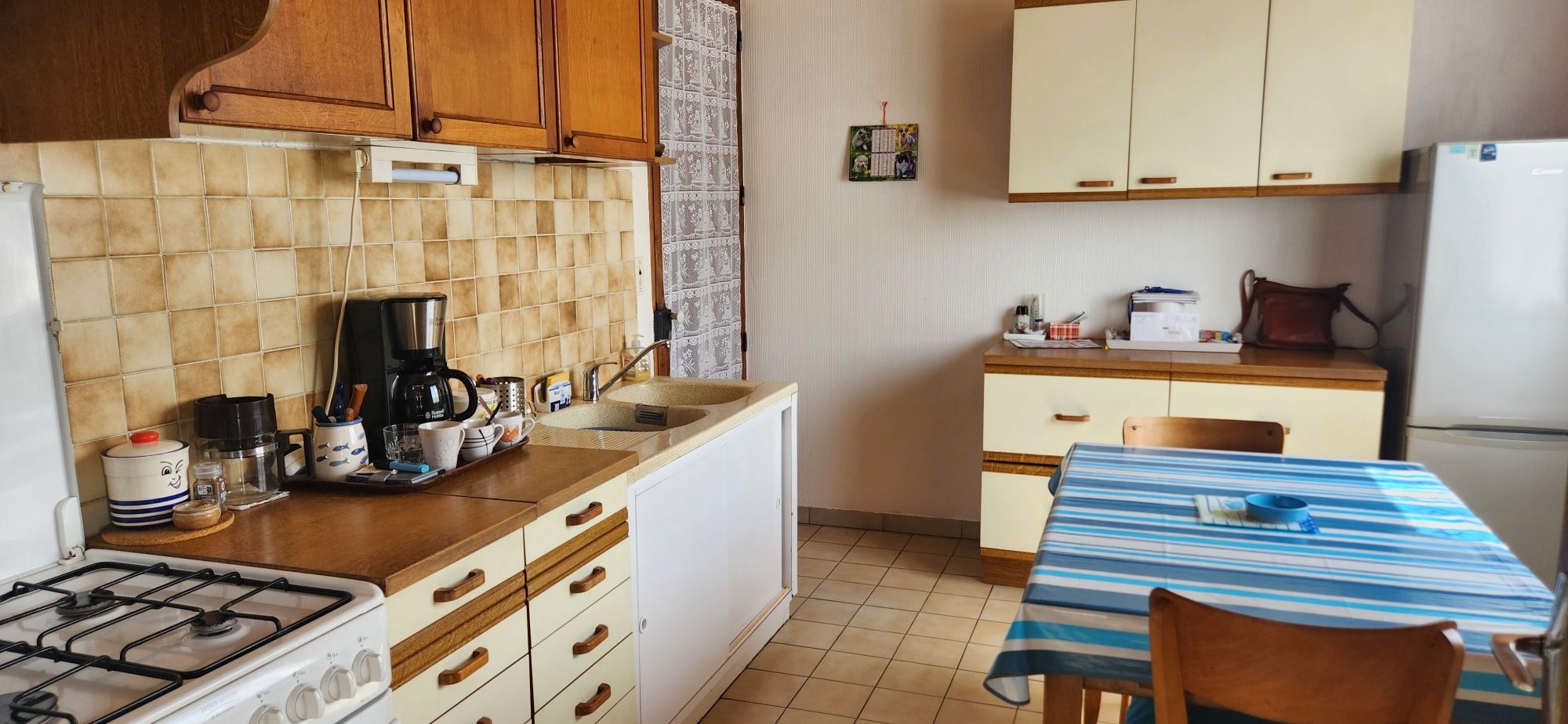 Elle se compose d’une entrée, un séjour lumineux, une véranda, une cuisine fonctionnelle accompagnée d’une arrière-cuisine / buanderie, ainsi que trois chambres confortables, une salle de bains et wc.